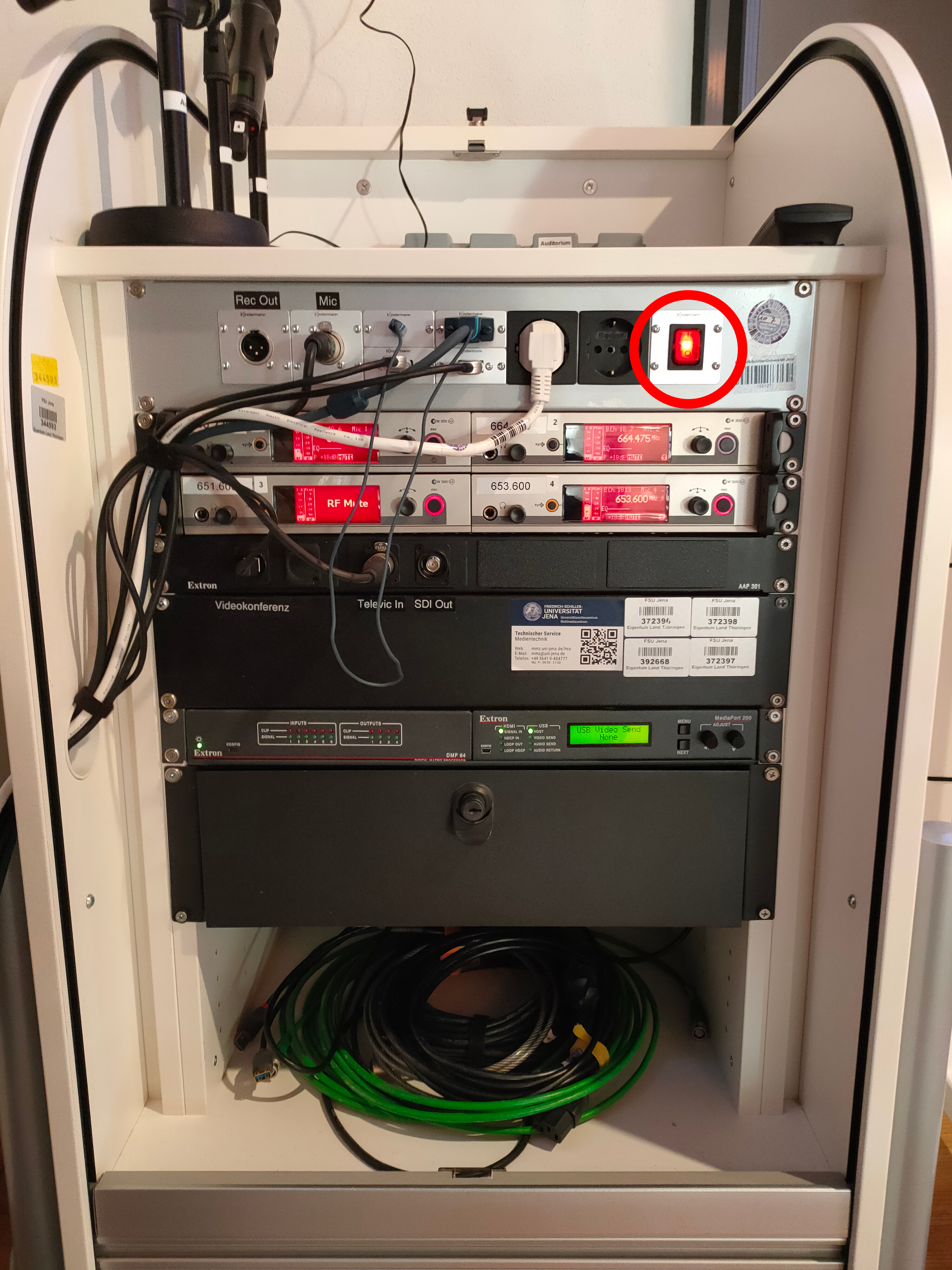 Hier schalten sie den Strom für Beamer und Mikrofone an.