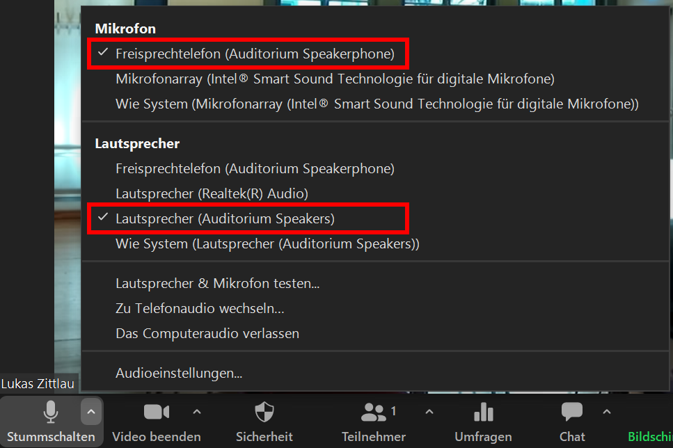 Der jeweilige Ton wird nun sowohl über die Lautsprecher als auch in ihrer Videokonferenz abgespielt.