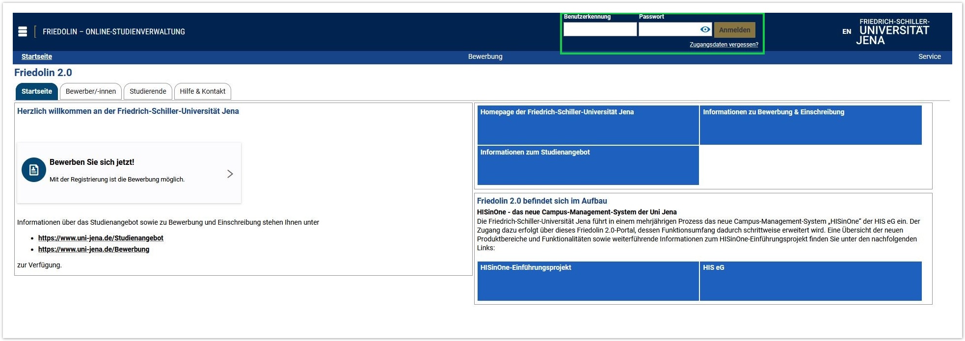Melden Sie sich an, indem Sie Ihr URZ-Kürzel und Ihr URZ-Passwort in die zwei Anmeldefenster oben rechts in der dunkelblauen Titelleiste der Startseite ein eingeben.