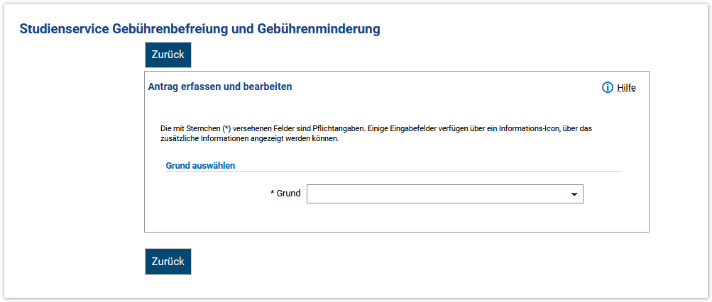 Erfassen Sie den Antrag und wählen Sie den entsprechenden Grund aus.