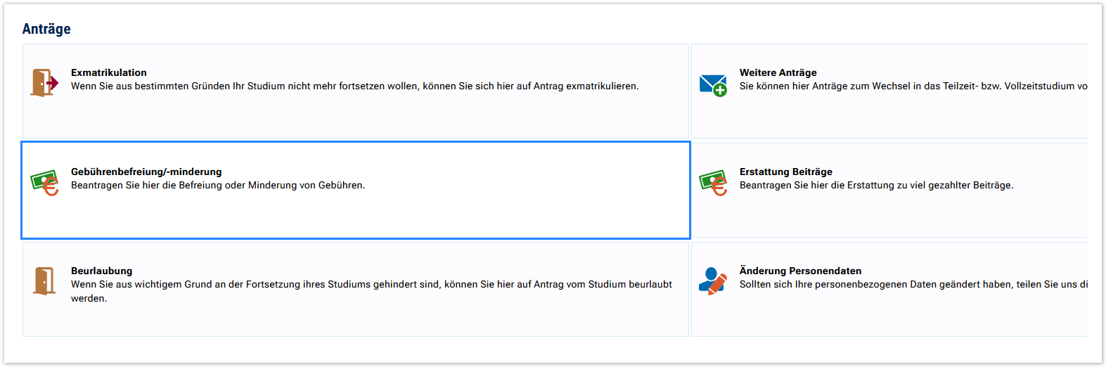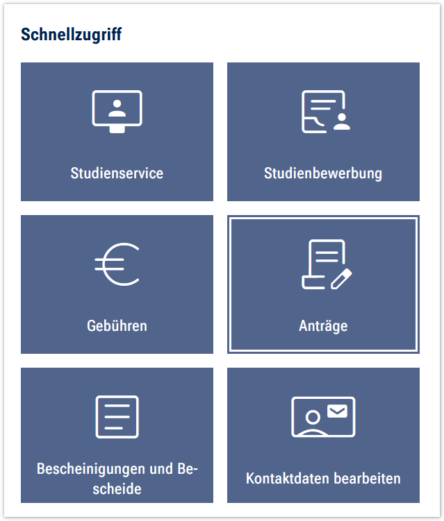 Nutzen Sie die Kachel „Anträge" auf der Startseite.